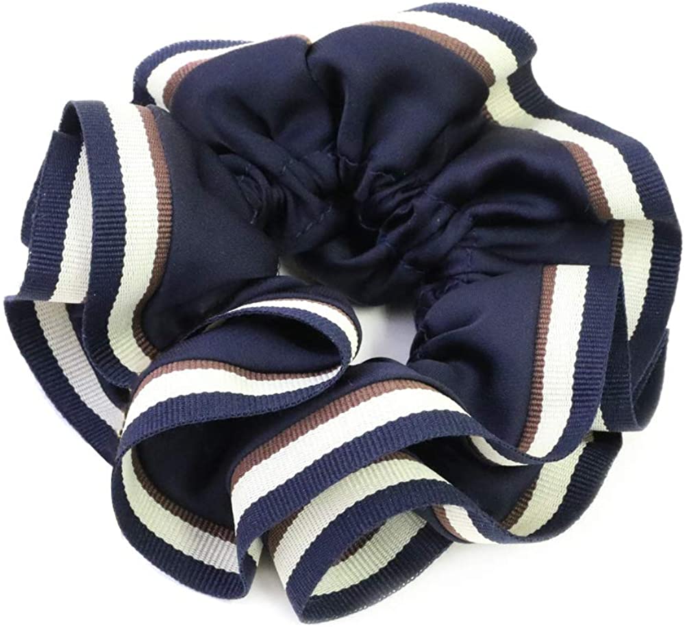 - 3色のボーダーラインのグログランでパイピングされたお洒落なシュシュ☆ 秋冬にぴったりな落ち着いたカラーのシュシュにボーダーラインが映え大人カジュアルな印象! シンプルなデザインで合わせやすくデイリーからオフィスまで使え重宝します。